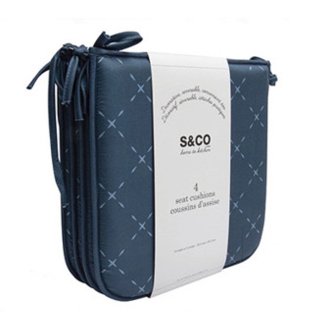 Chair pads navy reversible printed bistro set of 4