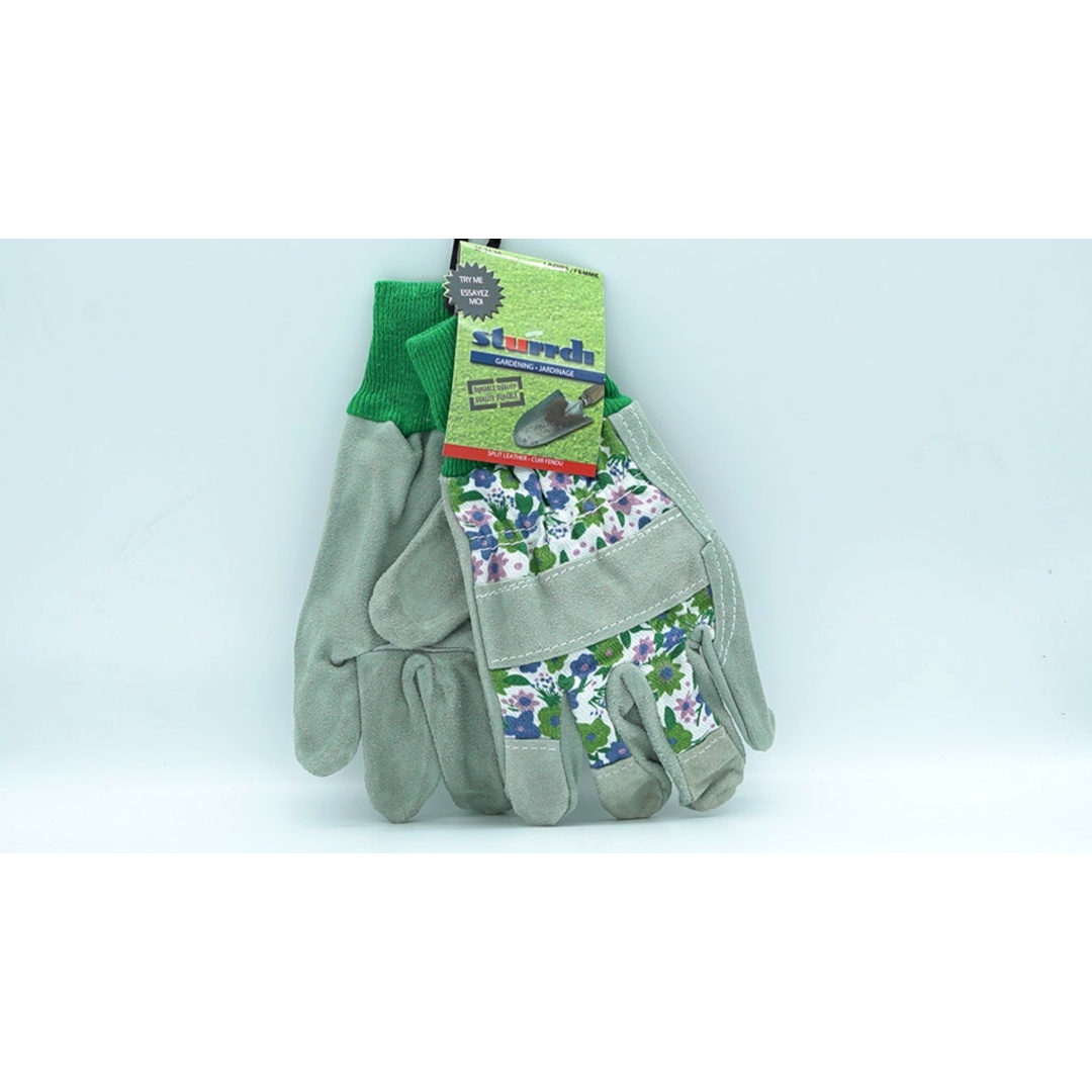Ladies Gardening Gloves Split Leather Floral Print Sturrdi