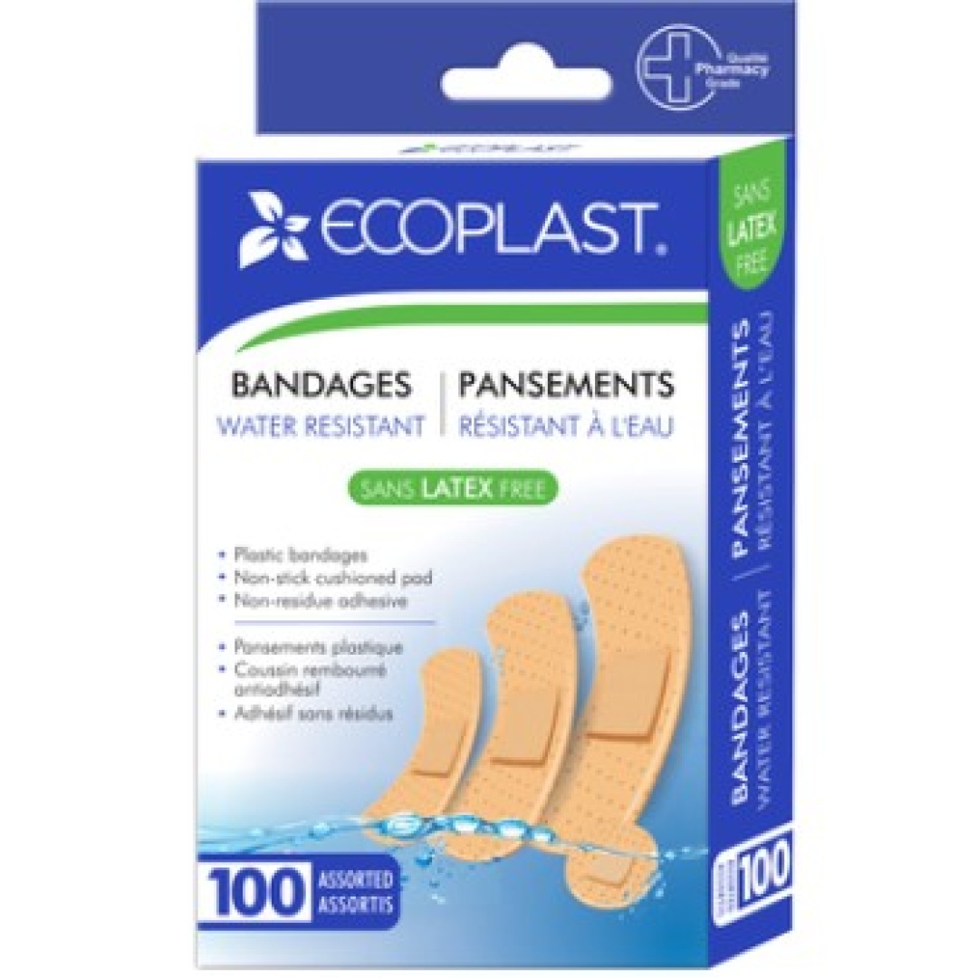 Bandages Water Resistant Plastic 100pk. Assorted Ecoplast