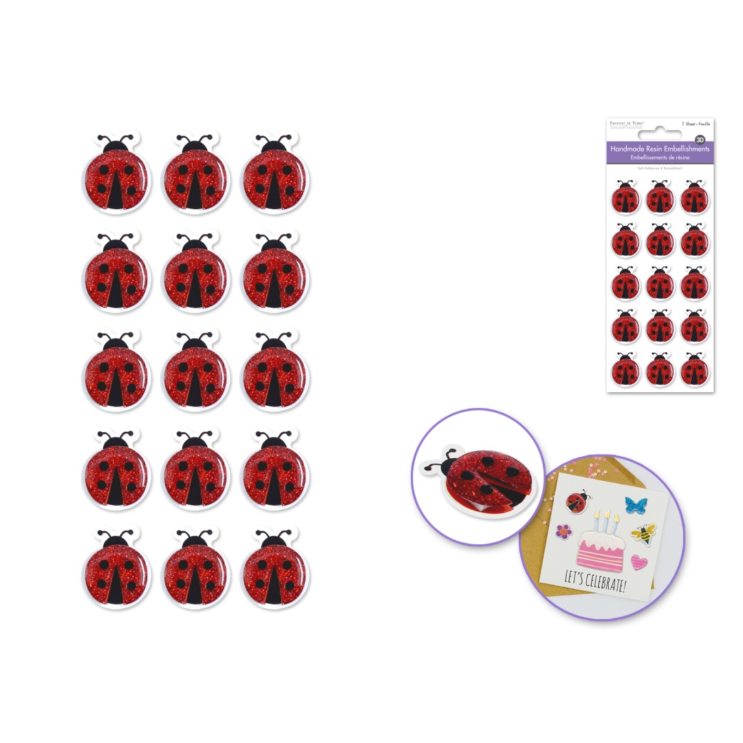 Handmade Sticker: 3d Resin Themed Elements D) Ladybugs