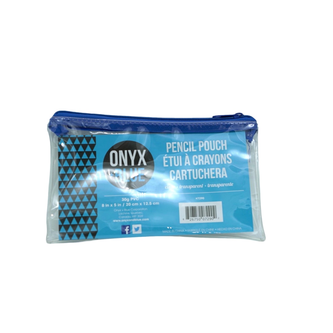 Pencil Pouch 8 x 5" Clear PVC Onyx + Blue"